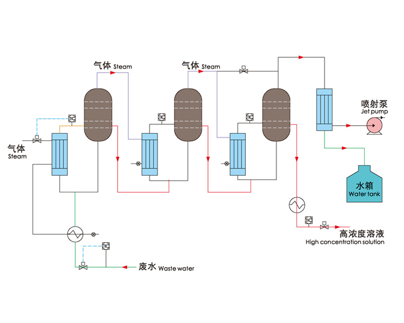 常用的蒸發工藝有單效蒸發、多效蒸發、MVR蒸發,根據物料的不同,選擇不同的蒸發方式。